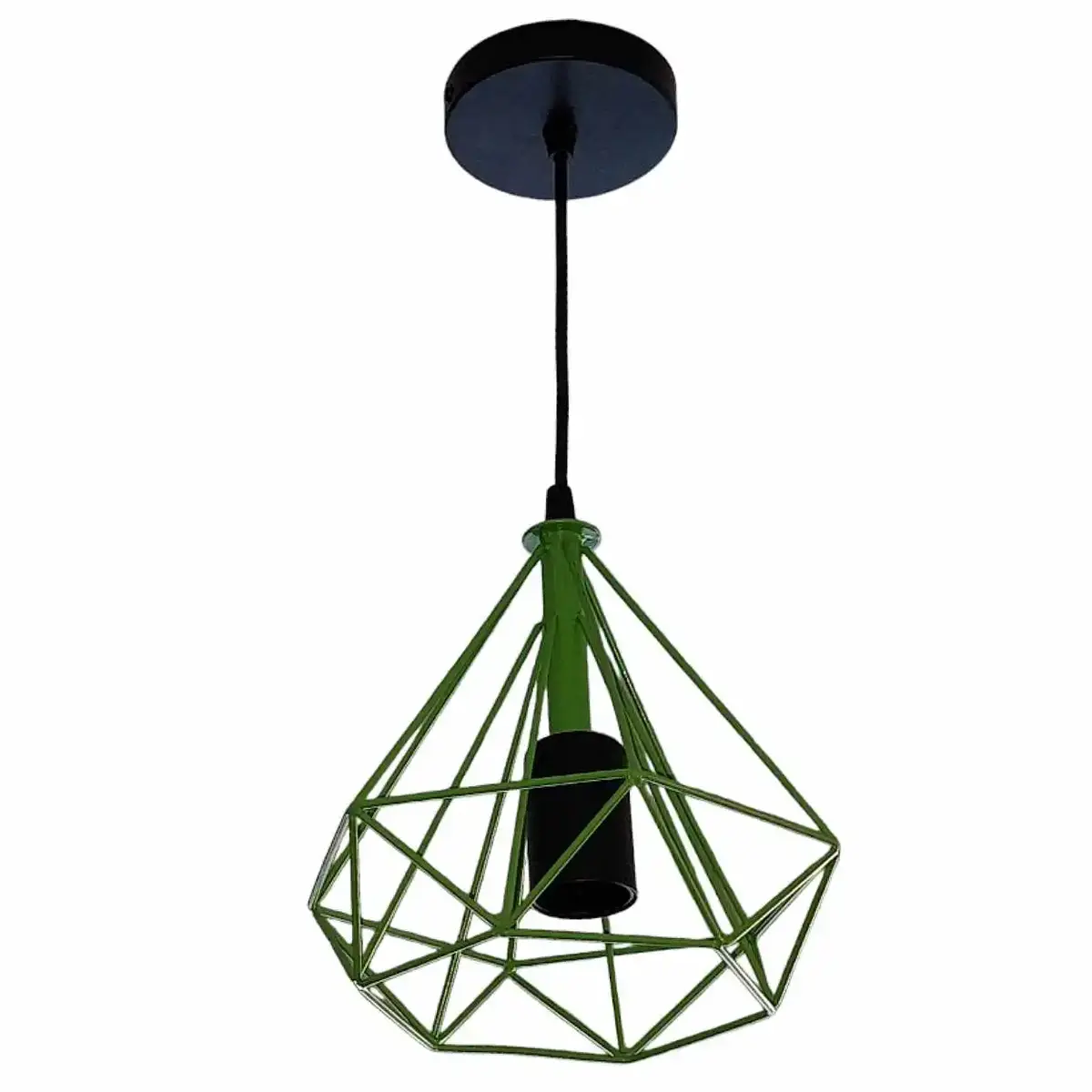 Το κρεμαστό φωτιστικό οροφής σχήματος διαμάντι σε πράσινο χρώμα δίνει μια πολύ ωραία αισθητική στον χώρο.