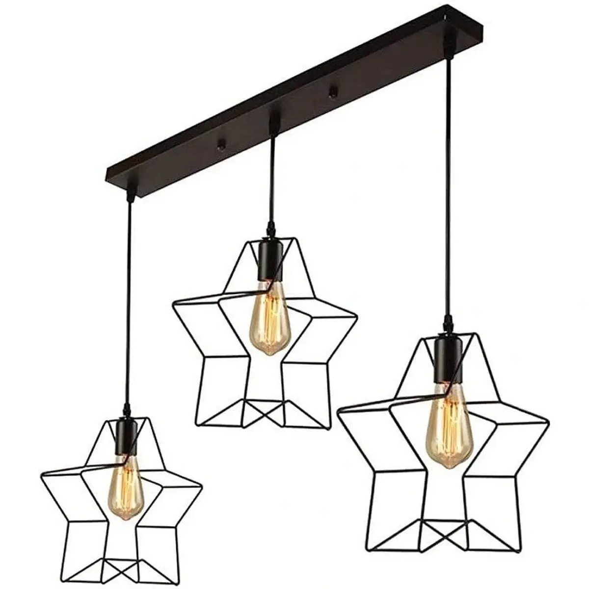 Κρεμαστό φωτιστικό οροφής τριπλό σχήματος αστέρι Ε27 σε μαύρο χρώμα R60 STAR3. Το φωτιστικό αυτό είναι ιδανικό για τοποθέτηση σε σαλόνι ή δωμάτιο σπιτιού, σε μπαρ κτλ. Έχει ωραίο design και το χρώμα είναι μαύρο