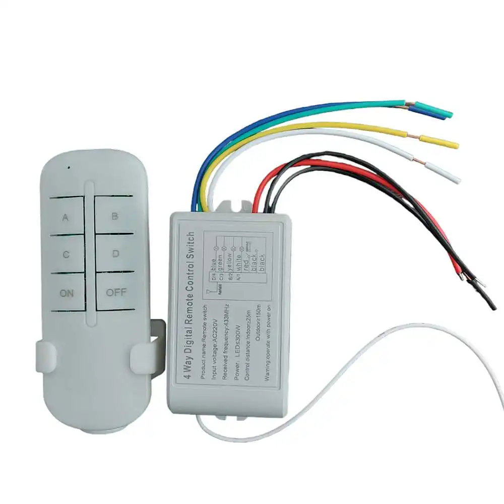 Δέκτης 220 volt 4 εντολές υψηλής ποιότητας. Ο έλεγχος είναι ασύρματος και η συχνότητά του είναι 433ΜHz. Ο δέκτης είναι ιδανικός για έλεγχο φώτων, TV, μηχανές, ανεμιστήρες, φωτογραφικές μηχανές, τηλεοπτικά σήματα, ακουστικά σήματα, ηλεκτρικά αυτοκινήτων , παραθύρων, κλειδαριών πορτών. πόρτας γκαράζ, σε διάφορα ηλεκτρικά είδη, όπως επίσης και για φώτα και led ταινίες. Το πλεονέκτημά του είναι ότι συνδέεται κατευθείαν στο ρεύμα (220V) και δεν χρειάζεται μπαταρία και έχει έτοιμα τα καλώδια και διαθέτει και σχήμα πάνω στον δέκτη για το πώς θα γίνει η σύνδεση.