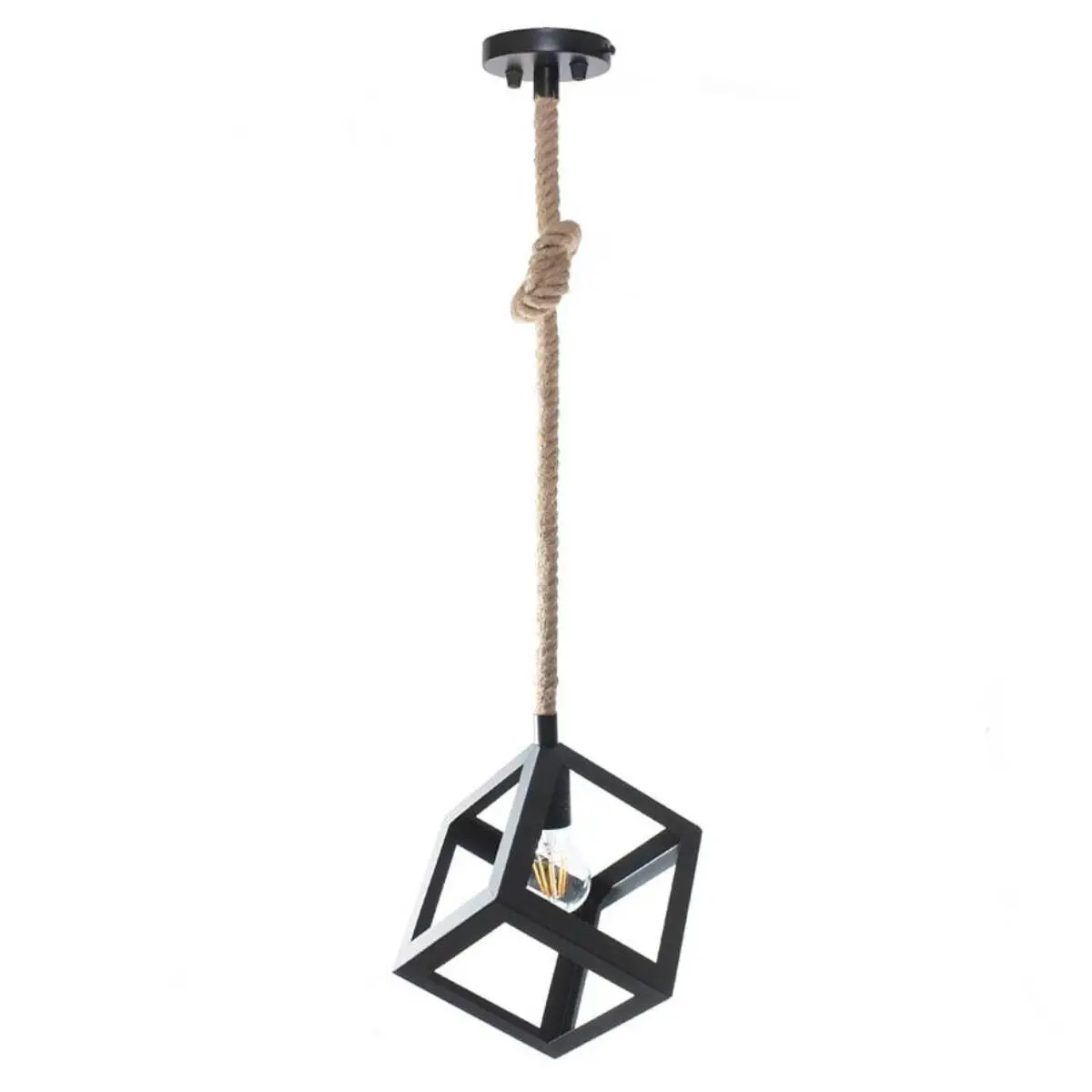 Μονόφωτο Κρεμαστό φωτιστικό οροφής σε μαύρο χρώμα και σκοινί