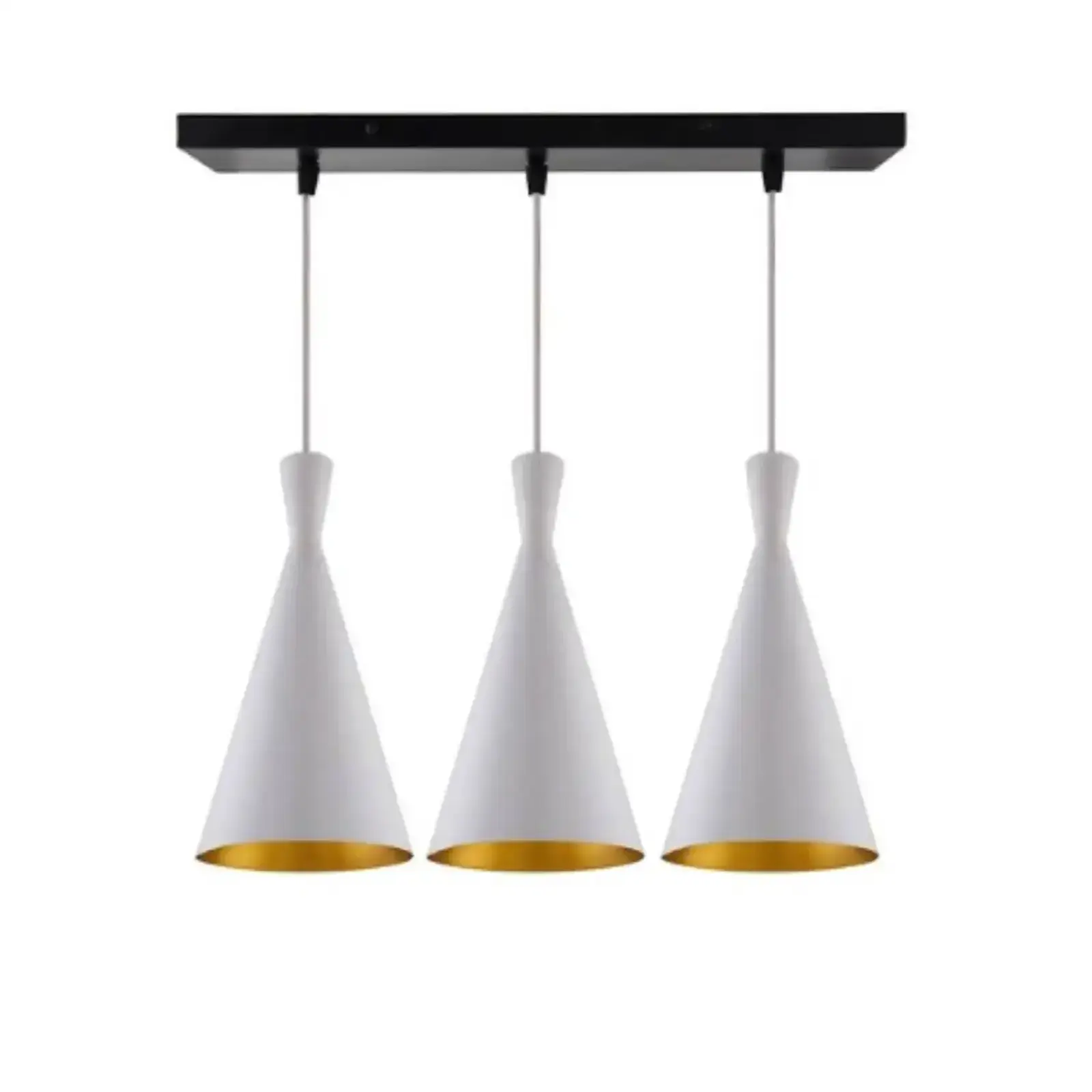 Κρεμαστό φωτιστικό οροφής τριπλό σε λευκό εξωτερικά και χρυσό χρώμα εσωτερικά Ε27 R50 REKTOW3C