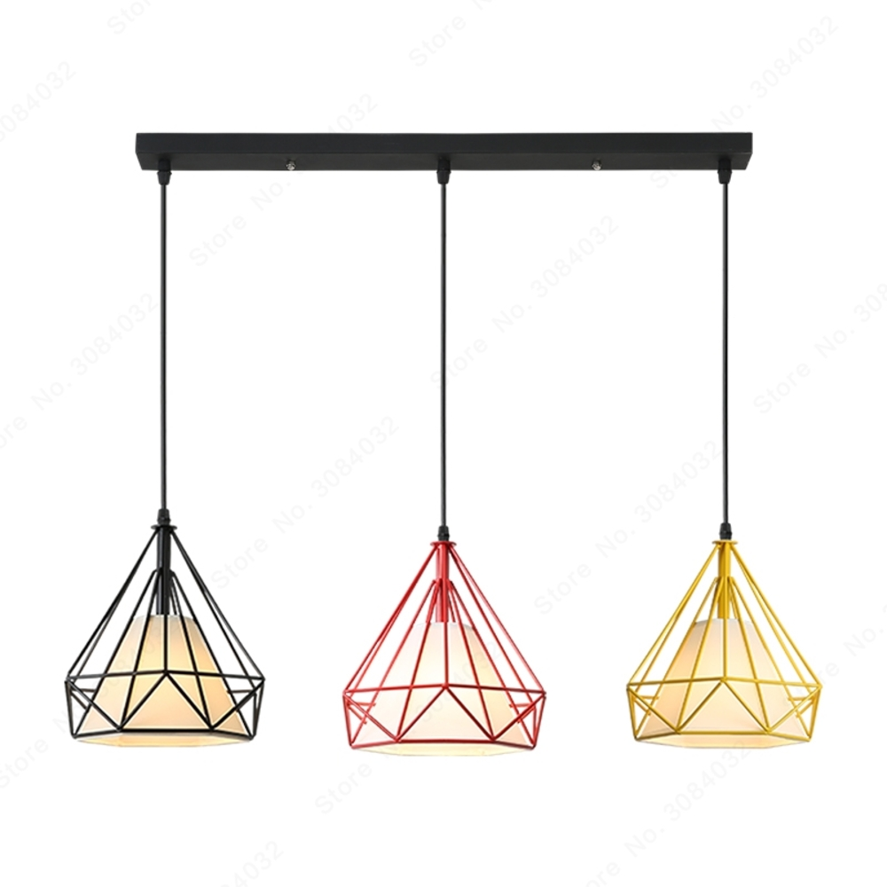 Χαρακτηριστικά από Κρεμαστό φωτιστικό οροφής τριπλό σε σχήμα διαμαντιού 25cm σε μαύρο, κόκκινο και κίτρινο χρώμα με λευκό κάλυμμα Ε27 R50 Nitorio 75